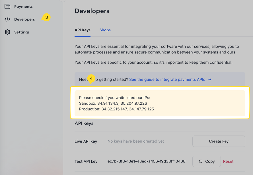 - Ensure your account role is Developer to access the Developers section.